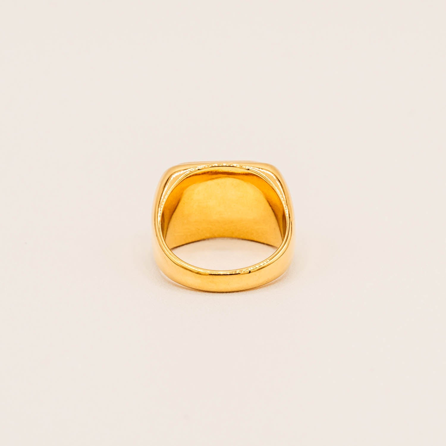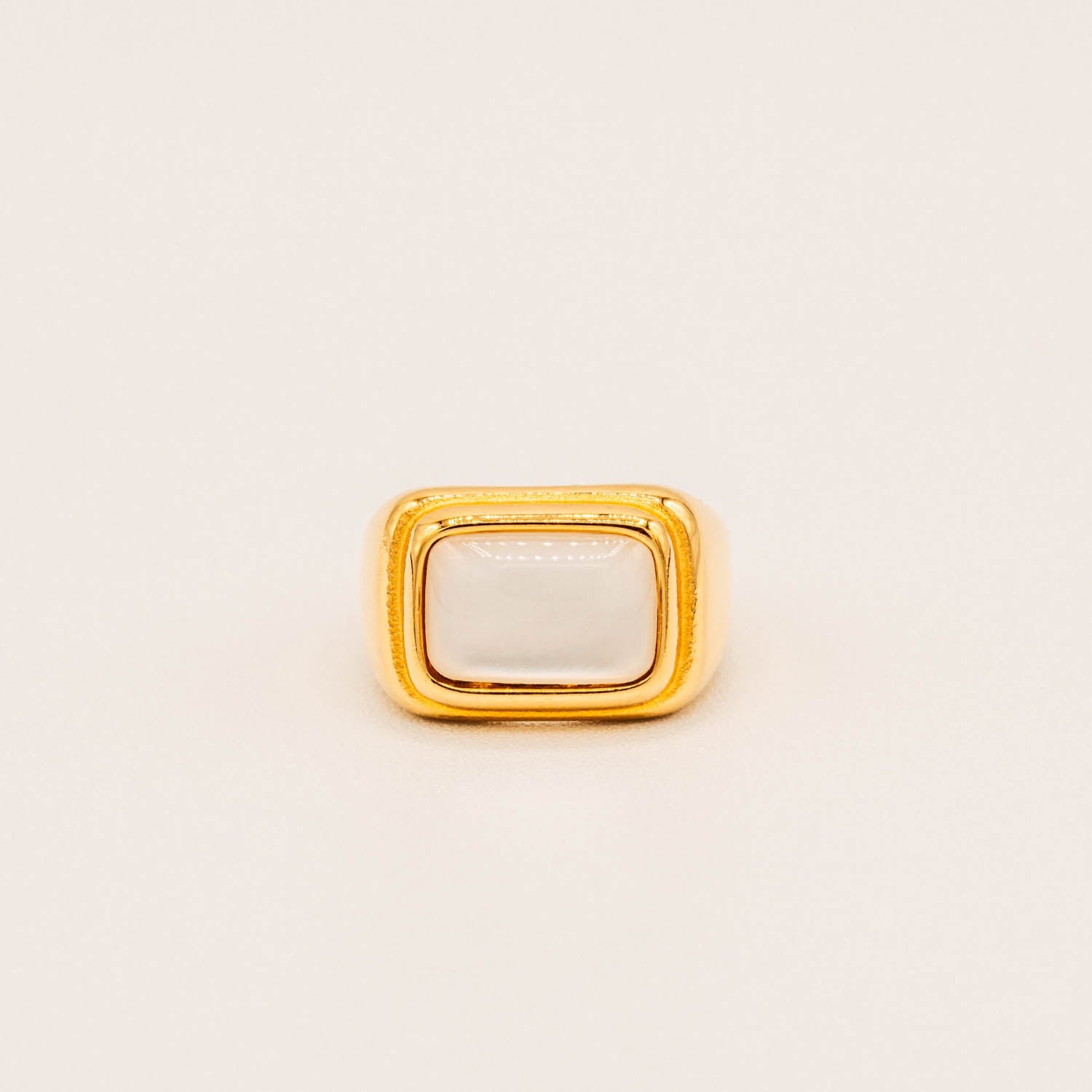 Crafted with gold and mother of pearl, this is a ring looking to make a statement. Pairable with any ensemble you can muster each and every day.
