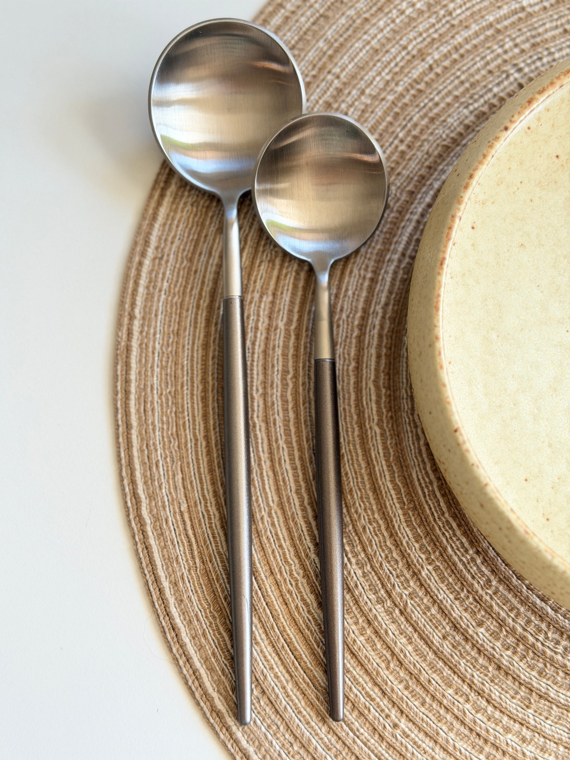 Make your table the talk of the dinner party with this matte stainless steel silverware set that's as charming as it is practical. The soft matte finish brings a touch of modern sophistication to every meal, while premium-grade stainless steel ensures these pieces laugh in the face of dishwashers and daily wear. No tarnishing, no fussing—just beautiful utensils ready for whatever you throw at them.