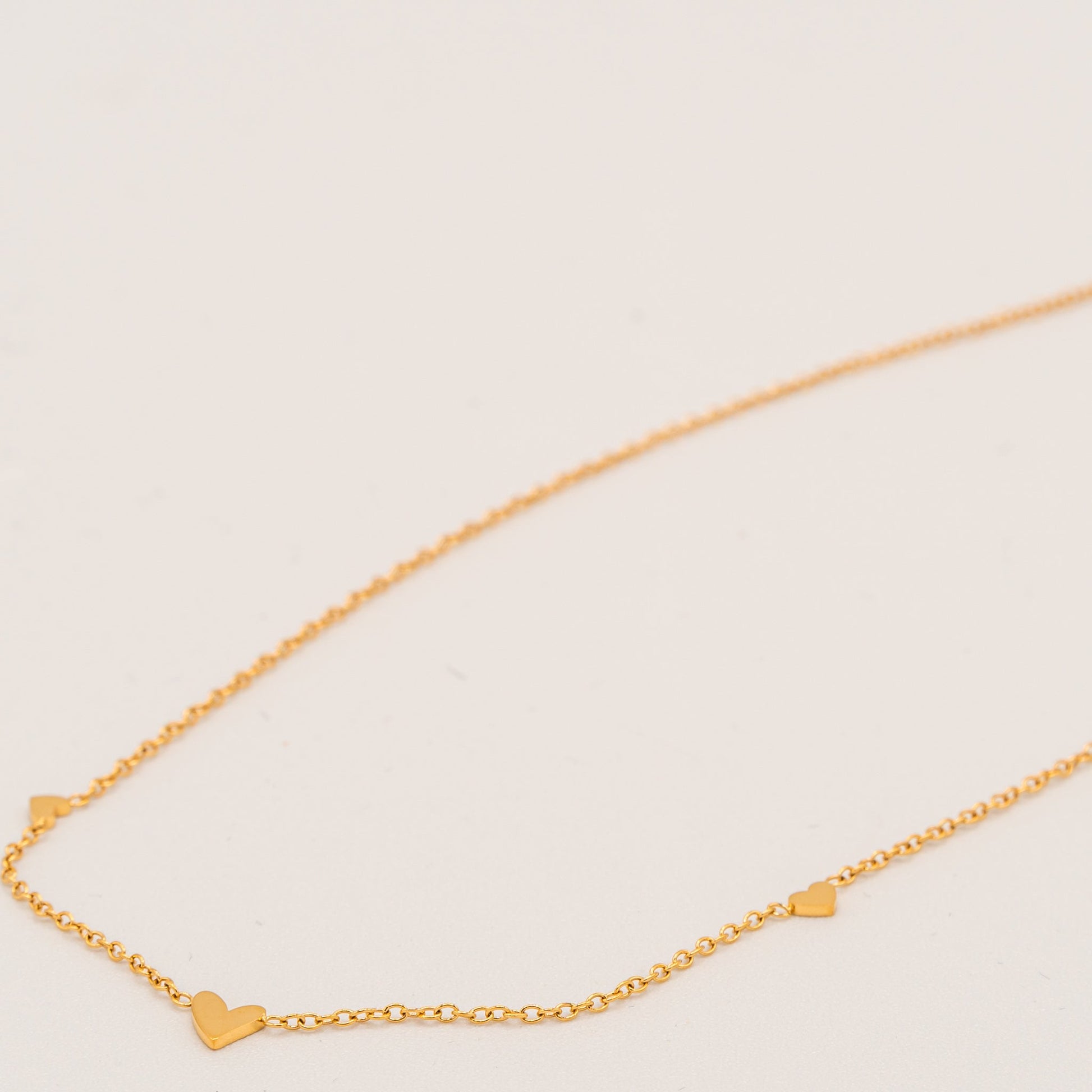Sweet sophistication in its purest form. Tiny polished 18k gold hearts are spaced along a delicate chain, creating a subtle reminder of love that's perfect for everyday wear.