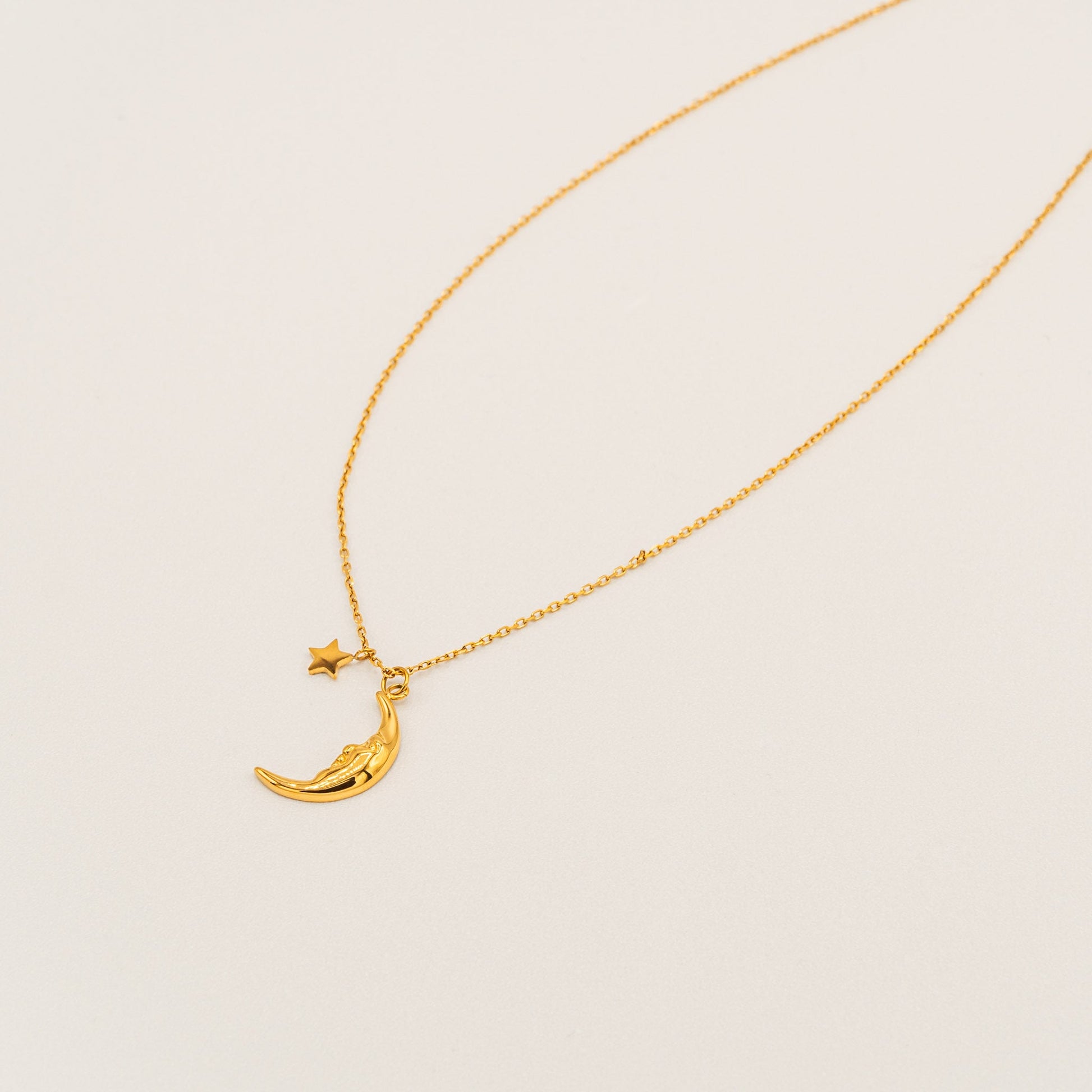 Celestial charm meets whimsical design. A crescent moon pendant paired with a delicate star creates a magical combination that catches light beautifully.