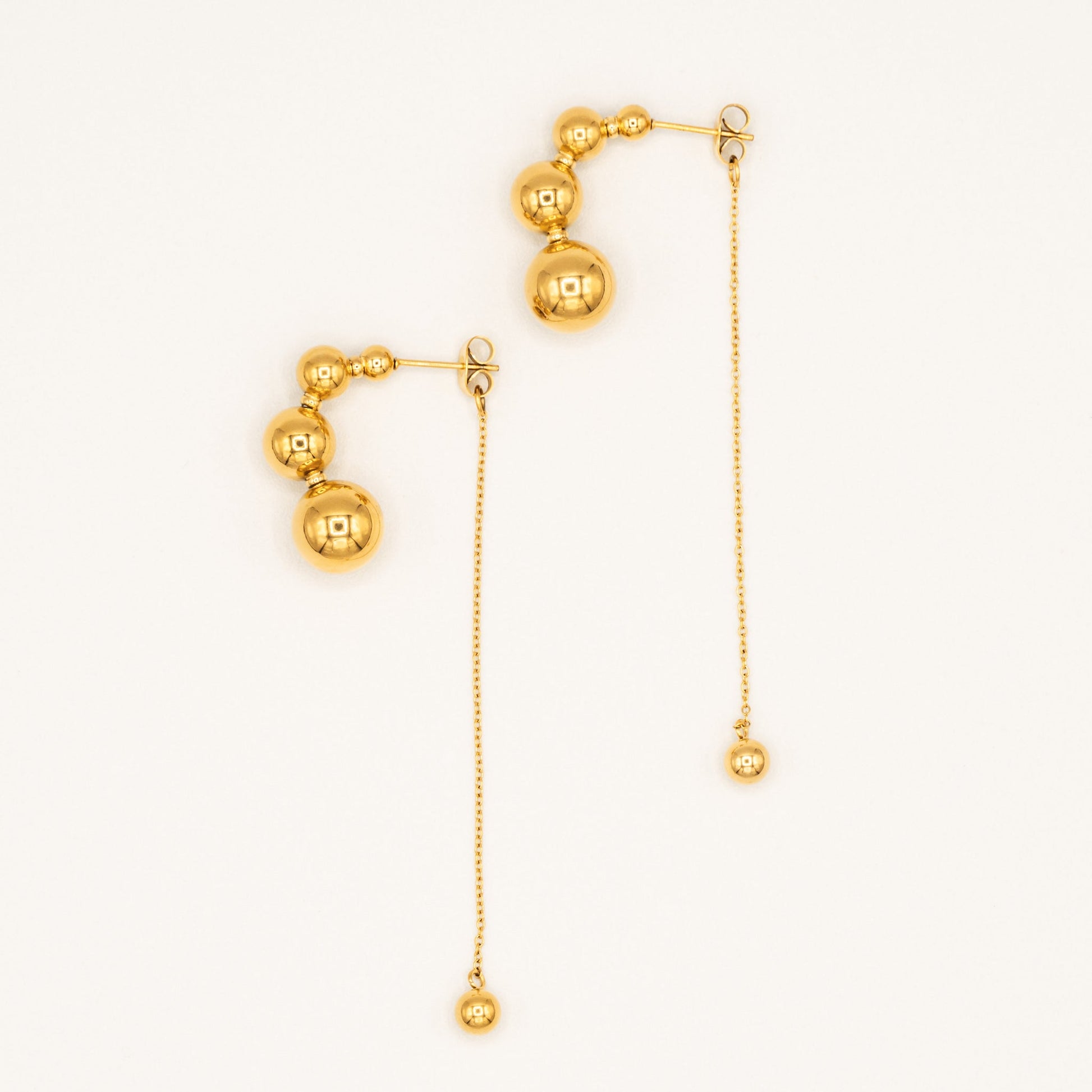 Dynamic elegance in motion. Graduated spheres create a graceful cascade, while delicate chains add length and movement to these contemporary drop earrings.