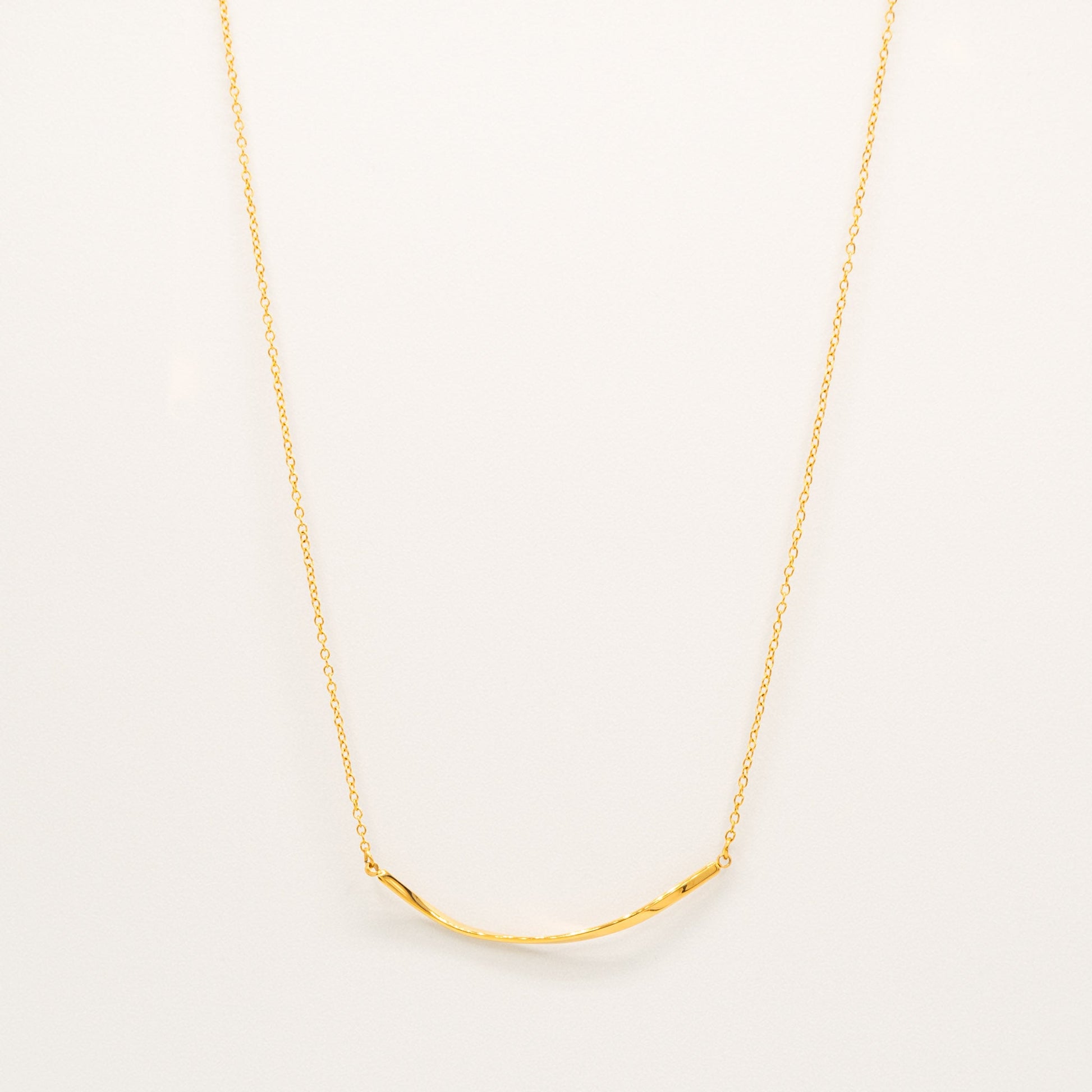 Minimalism at its finest. A gentle curved bar creates a clean, flowing line that rests elegantly along the collarbone, offering a subtle statement of modern style.