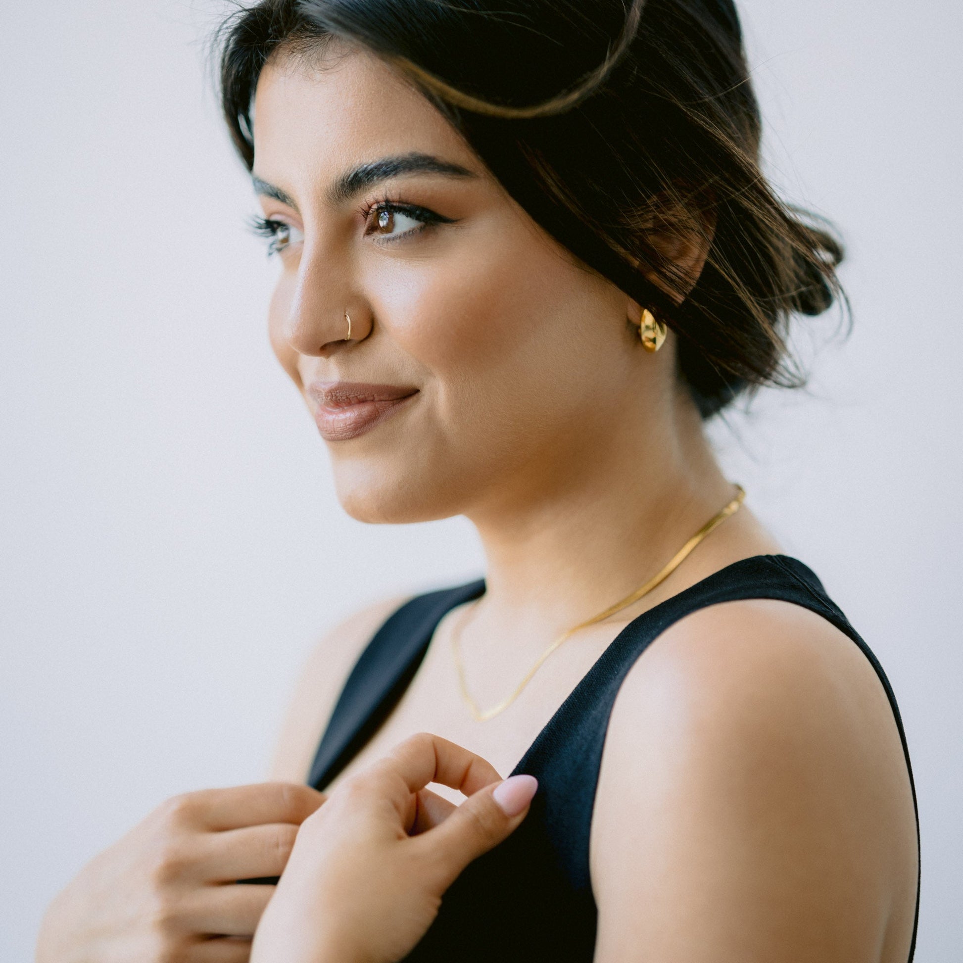 Our herringbone style Viper Necklace is to necklaces as the plain white tee is to your wardrobe; stylish no matter the event and timeless.