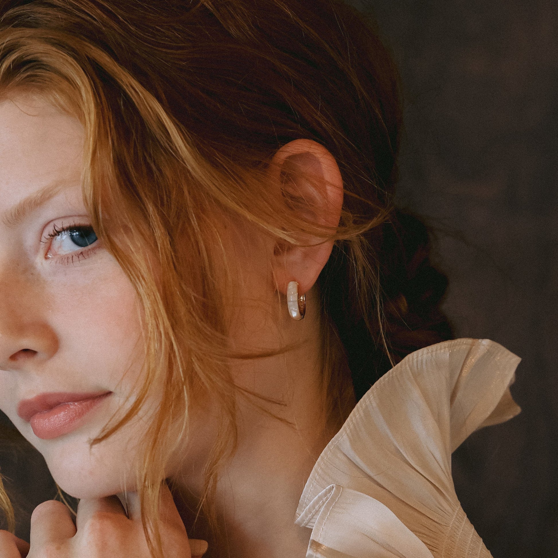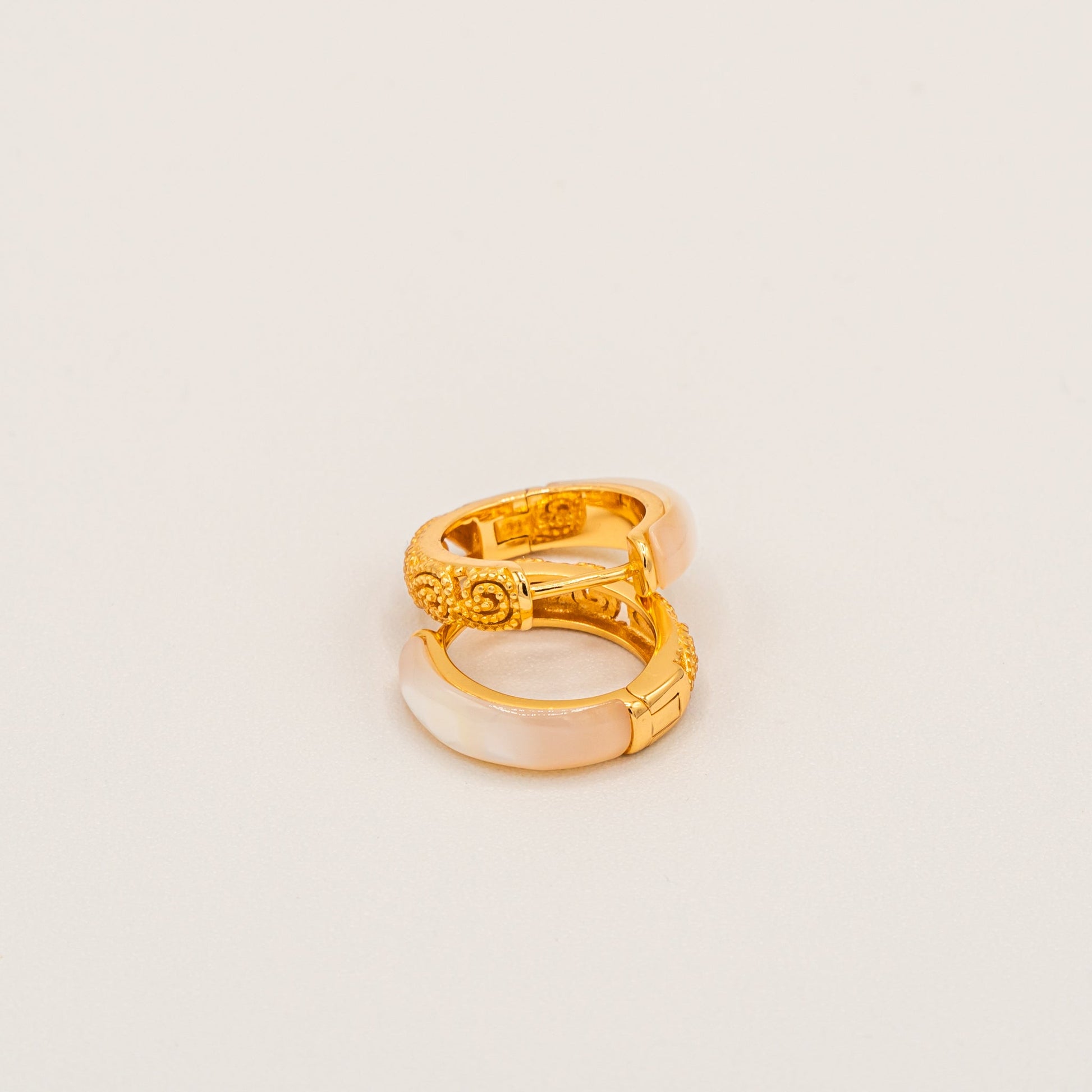 These White Pearl Hoop Earrings are crafted from exceptional materials. They feature a core of sterling silver for strength and durability and 18k gold for the ultimate in luxury. Finished with a mother-of-pearl detail, these earrings are sure to deliver timeless style and elegance.