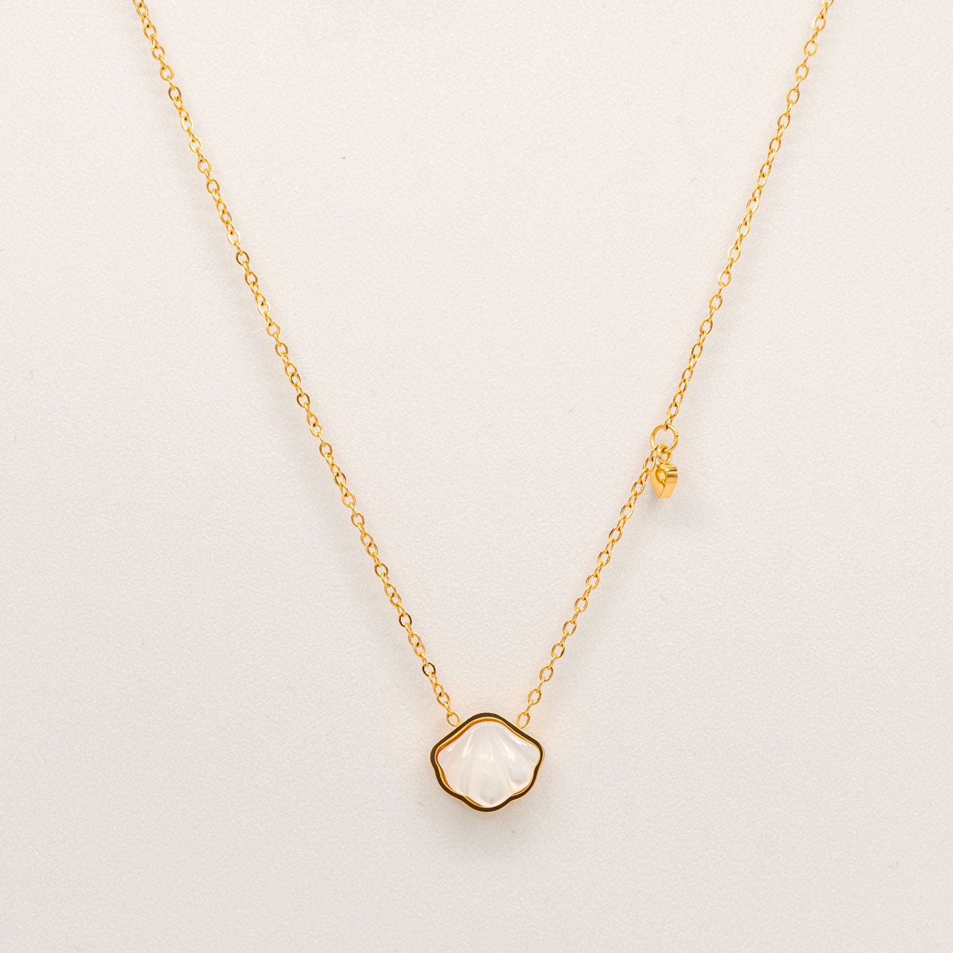This White Shell Necklace features a luxurious 18K gold plated finish, a titanium steel core, and a natural Mother of Pearl gemstone. A 42 cm chain with a 5 cm extender and a lobster clasp closure completes the look. Reliable and stylish, this necklace is sure to be a favorite.