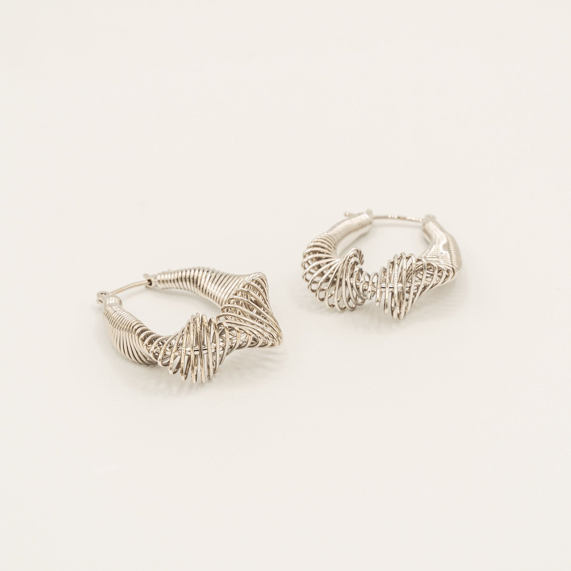 Embrace modern sophistication with these architectural statement earrings. The sculptural design features a mesmerizing ribbed texture that catches light with every movement, while the graceful horseshoe silhouette creates an effortlessly chic frame for your face. A perfect blend of bold artistry and timeless elegance.